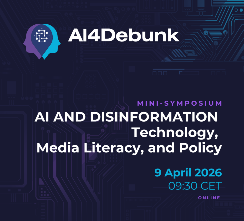 Liity seuraamme AI4Debunk-minisymposium: Tekoäly ja disinformaatio – teknologia, medialukutaito ja politiikka, verkkotapahtuma, joka kokoaa yhteen tutkijoita, alan toimijoita ja sidosryhmiä tutkimaan, miten tekoäly muokkaa disinformaation torjuntaa. Symposiumissa keskitytään siihen, miten teknologinen innovointi, koulutukselliset lähestymistavat ja poliittiset kehykset voivat toimia yhdessä, jotta voidaan vahvistaa yhteiskunnan kykyä sietää harhaanjohtavaa ja manipuloivaa tietoa digitaalisessa ympäristössä.
